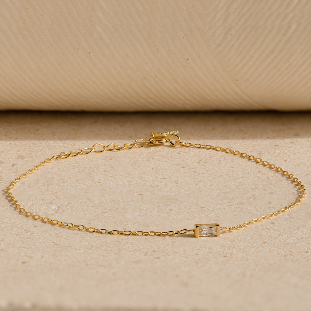 Capture your unique story with our Personalized Baguette Birthstone Bracelet, a must-have staple for your collection. Carefully handcrafted, this dainty bracelet features a stunning baguette birthstone of your choice, symbolizing your special connection with loved ones or your own birth month. Whether you want to mark a birthday, anniversary, or any other significant event, our bracelet serves as a timeless symbol of love and celebration _