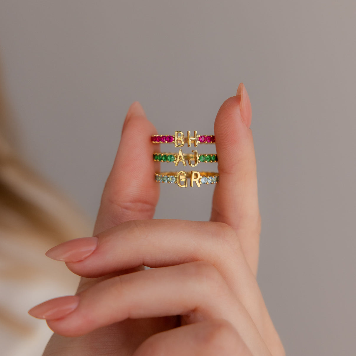Make it personal with our Duo Initial Birthstone Tennis Ring, a vibrant open eternity band featuring your choice of sparkling birthstones and two custom letters. It__ a bold, meaningful piece that celebrates your initials, your loved ones, or your story _