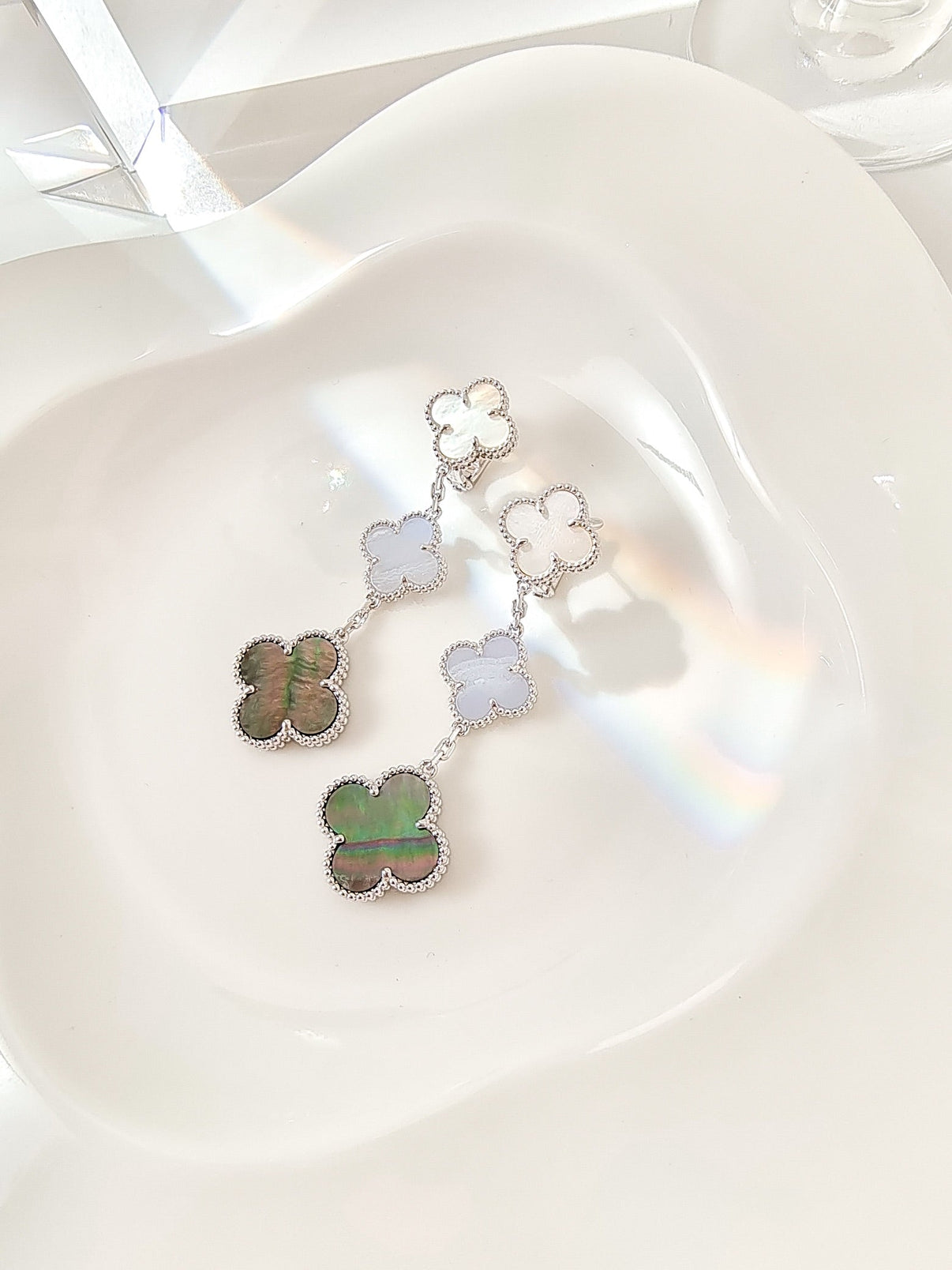 [Luna Brilliance]CLOVER 3 MOTIFS CHALCEDONY DARK MOP SILVER EARRINGS