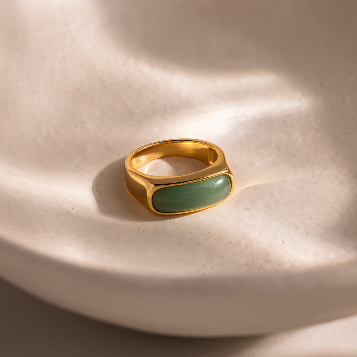 Polished green jade meets a sleek gold bezel in our Jade Signet Ring. With vintage inspiration and gemstone symbolism, it__ a bold, meaningful accessory. Perfect for gifting or grounding your everyday look__ade is believed to invite harmony and good fortune.