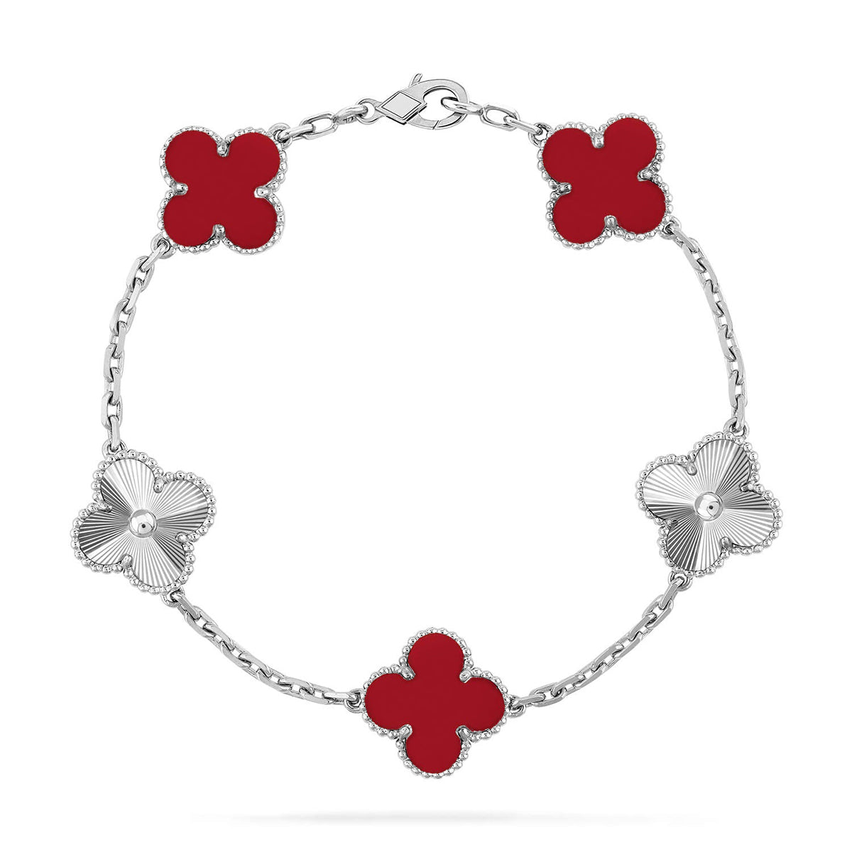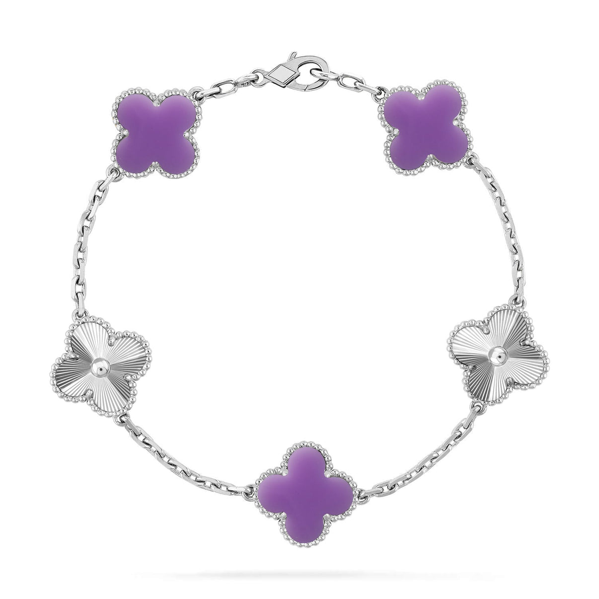 [Luna Brilliance]THICK GOLD-PLATED CUSTOM SIZE EDITION CLOVER LASER SILVER BRACELET COLLECTION,5 MOTIFS