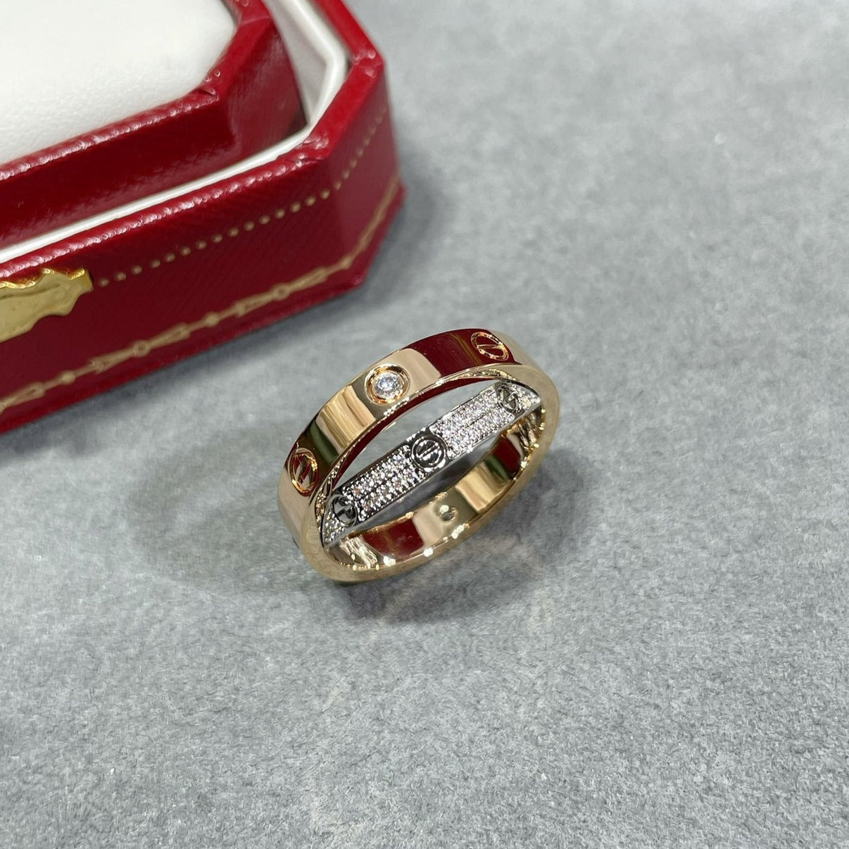[Luna Brilliance]LOVE PINK GOLD SILVER DIAMOND DOUBLE RING