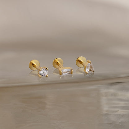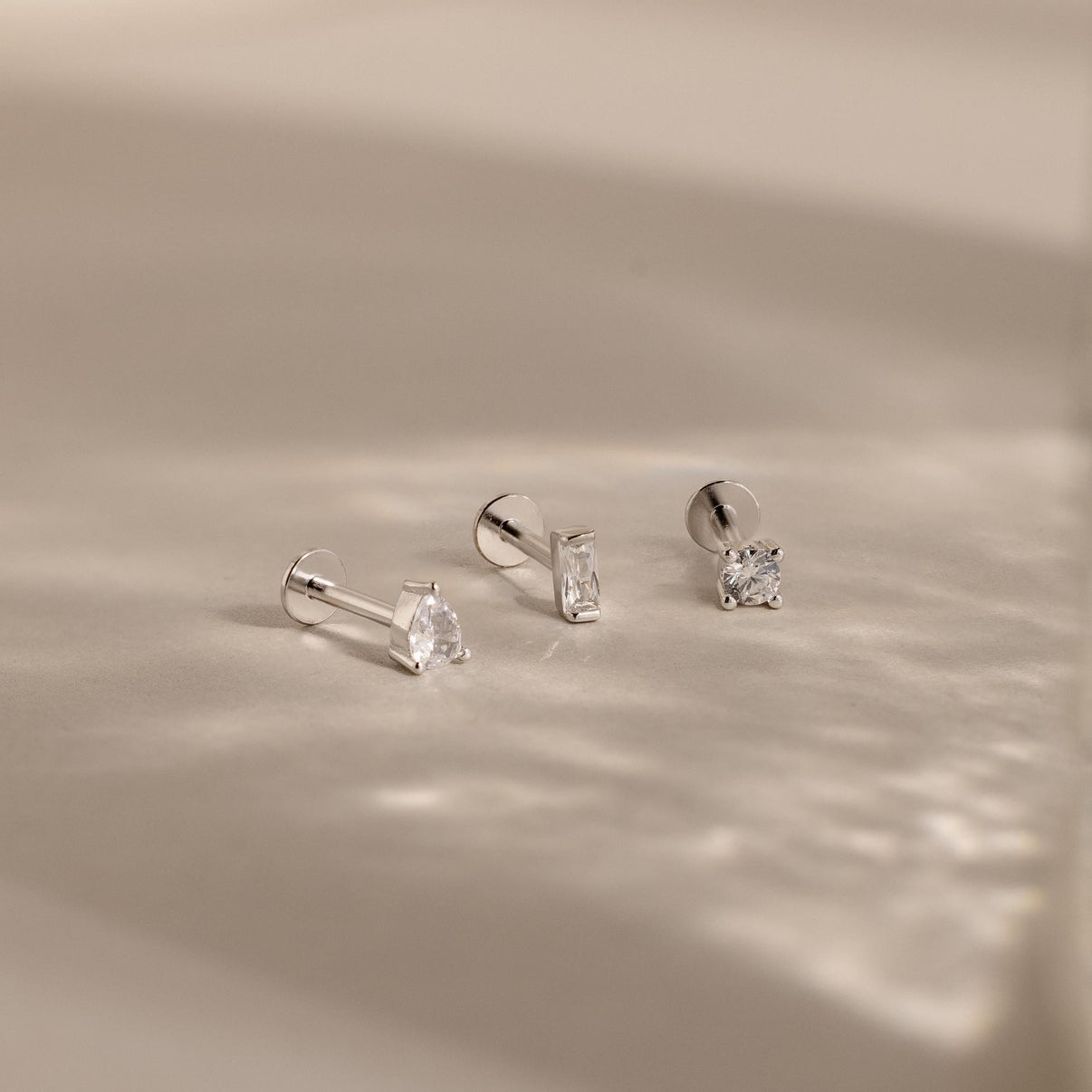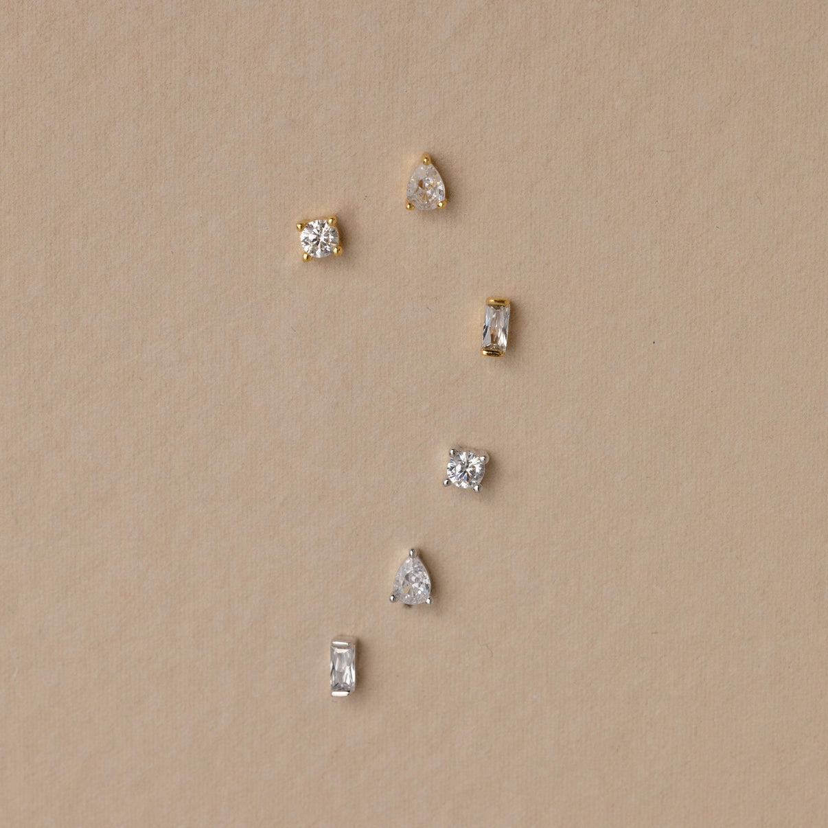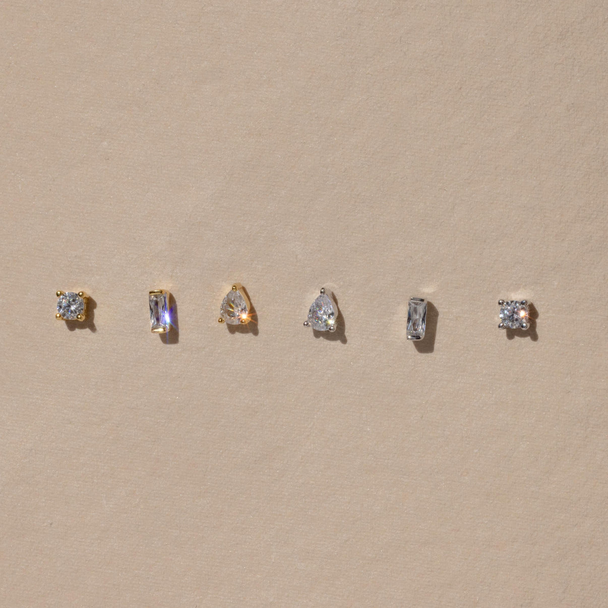 Drift into a world of dreamy elegance with our Mixed Diamond Flat Back Stud Set. Featuring round, baguette, and teardrop diamond studs, these flat-back stud earrings are perfect for adding a touch of sparkle to your best moments _