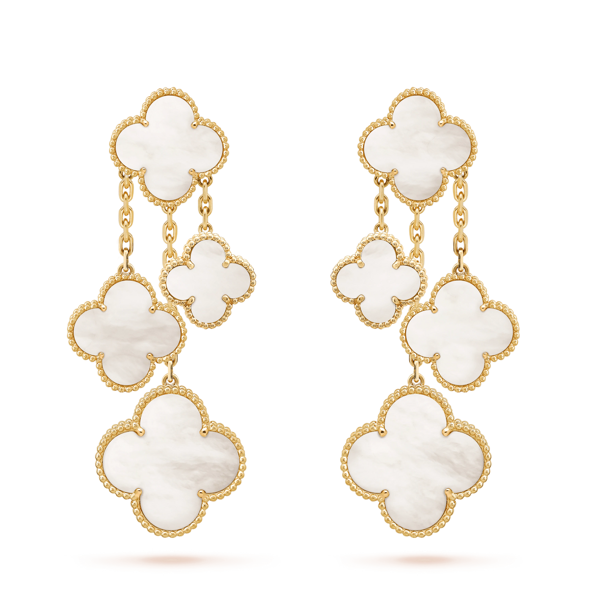 [Luna Brilliance]CLOVER EARRINGS WHITE MOP 4 MOTIFS GOLD
