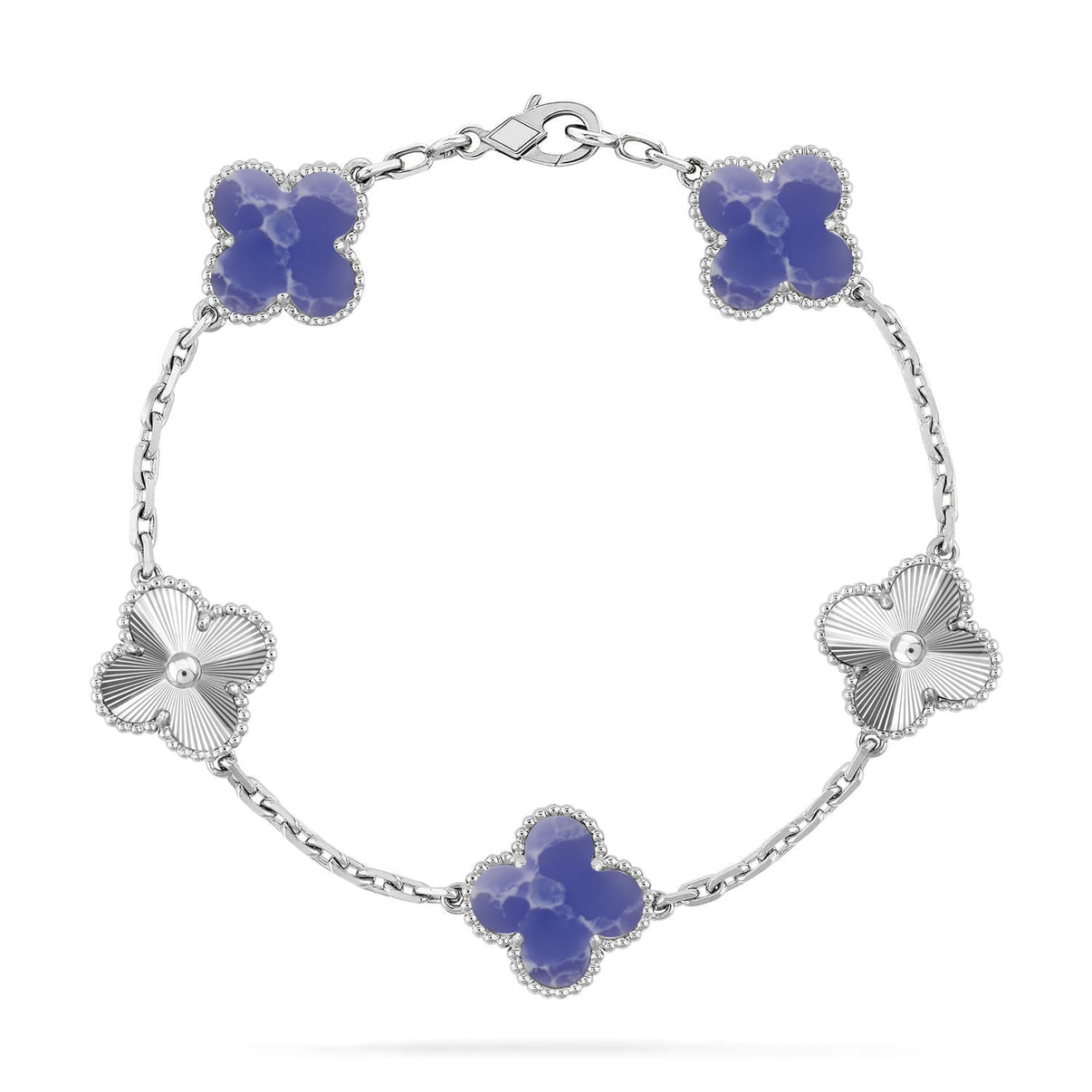 [Luna Brilliance]THICK GOLD-PLATED CUSTOM SIZE EDITION CLOVER LASER SILVER BRACELET COLLECTION,5 MOTIFS